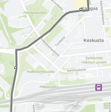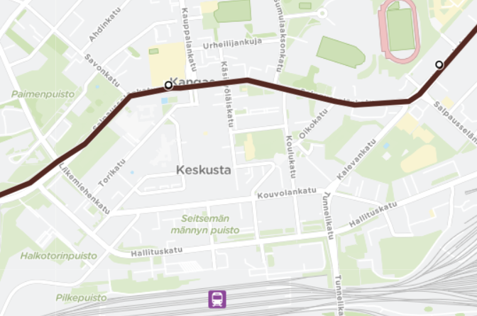 - Ajetaan Salpausselänkatua pitkin. Tasaus Pääkirjaston pysäkillä.