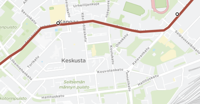 - Jatketaan Kalevankadulta Salpausselänkadulle. Ajantasaus Kankaan Koulun pysäkillä.