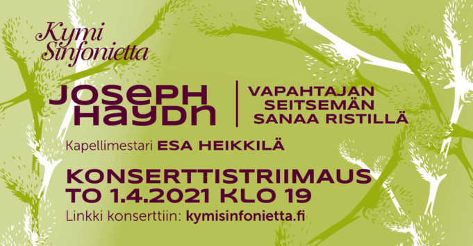 Kymi Sinfoniettan pääsiäisen verkkokonsertissa torstaina 1.4. klo 19 kuullaan Joseph Haydnilta vuoden 1786 pitkäperjantaille tilattu teos, jossa jokaista Jeesuksen seitsemää viimeistä lausetta kuvaa kymmenen minuuttia kestävä, rauhallinen musiikki. Tämän lisäksi alussa on johdanto, ja teos päättyy Maanjäristykseen. Haydnin sävellys henkii samalla voimaa ja heikkoutta, surua ja hyväksyntää, hämmennystä ja ymmärrystä. Tunnelma on mietiskelevä, ja – Haydnille tyypilliseen tapaan – lohdullisen valoisa. Orkesteria johtaa kapellimestari Esa Heikkilä.