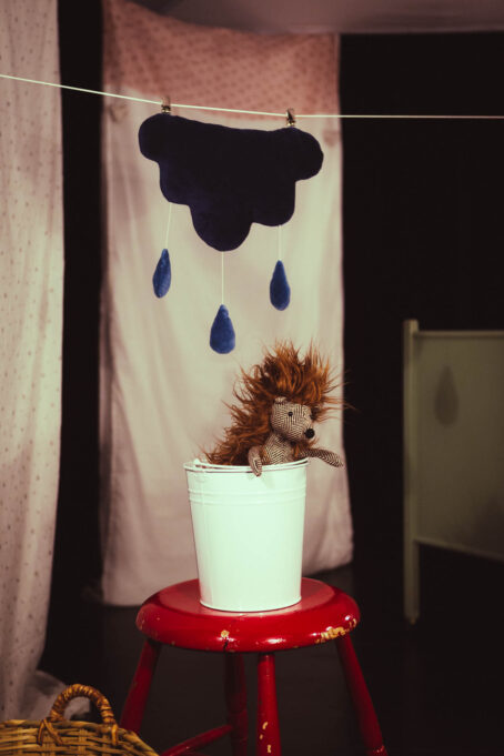 Sateenvarjon suojassa pääsemme perheen pienokaisen kanssa seuraamaan Pikku-siilin päivää. Satuvarjon alle hipsutellaan sukkasillaan ja pehmoisille tyynyille voi vaikka välillä kellahtaa pötköttelemään! Lempeä ja lämminhenkinen esitys sopii hyvin ensimmäiseksi teatterikokemukseksi.