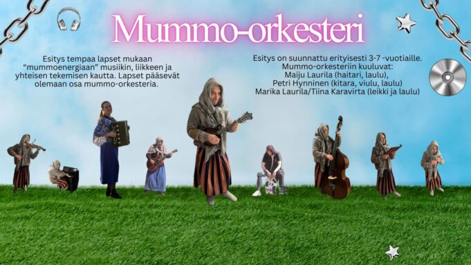 Esitys tempaa lapset mukaan “mummoenergiaan” musiikin, liikkeen ja yhteisen tekemisen kautta. Lapset pääsevät olemaan osa mummo-orkesteria. Esitys on suunnattu erityisesti 3-7 -vuotiaille.